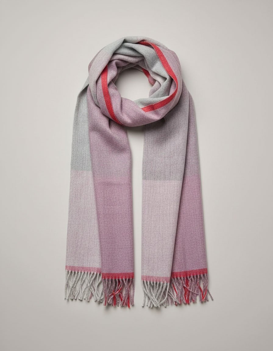 Utilizamos exclusivamente fibra de alpaca, el “oro de los Andes”, seleccionada por su capacidad térmica natural y su carácter sostenible. El diseño presenta una sofisticada transición de colores gris y lavanda que evocan las mañanas andinas, contrastados con un audaz rojo coral que simboliza la vitalidad de nuestra cultura. Con más de una década de experiencia, fusionamos la innovación estética con la tradición milenaria, ofreciendo una prenda única que envuelve con el lujo auténtico de la artesanía peruana.