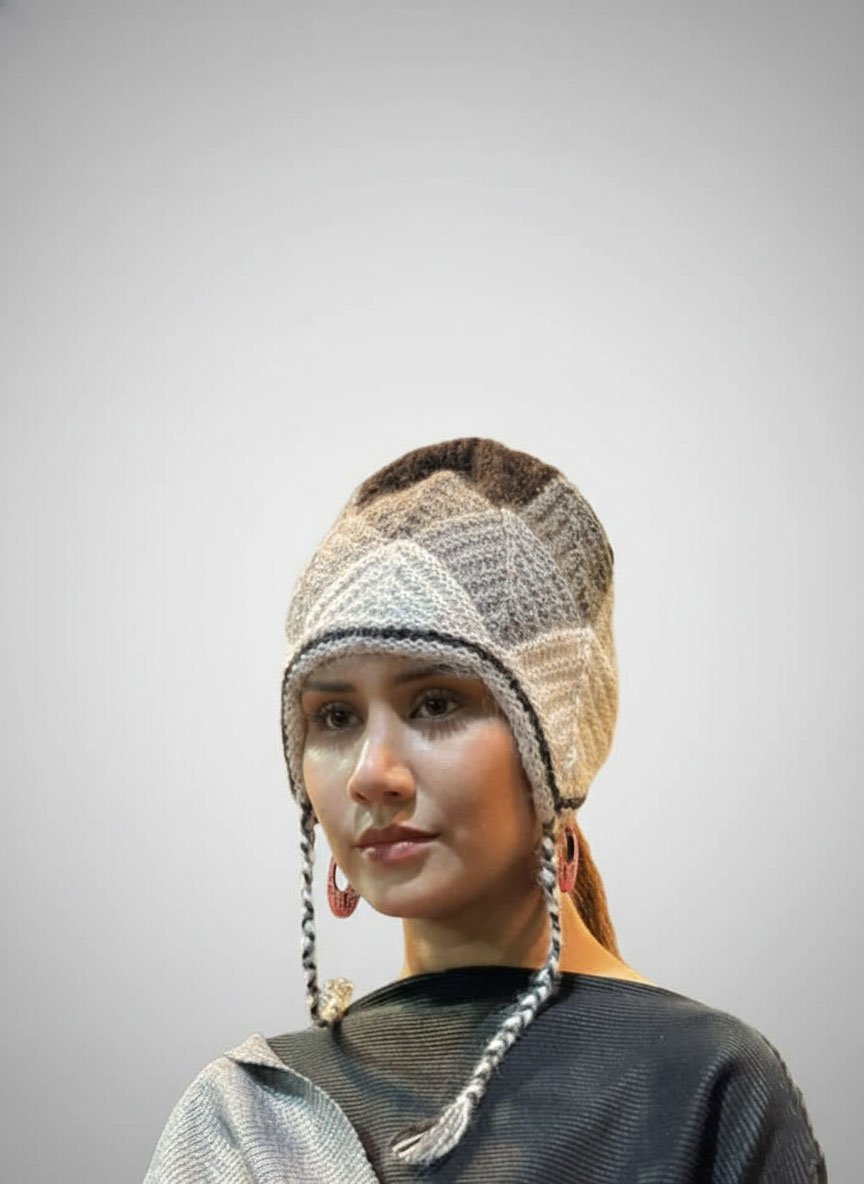 Chullo de Alpaca Tejido a Mano – Gorro Andino en Escala de Grises.